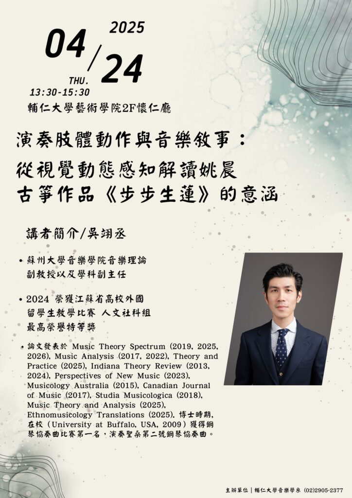 《花絮》2025.04.24吳翊丞老師講座 演奏肢體動作與音樂敘事:從視覺動態感知解讀姚晨古箏作品<步步生蓮>的意涵