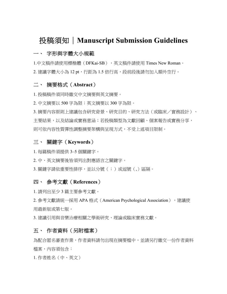 - 培育新世代專業人才:藉由公開徵稿、論文發表與臨床交流,鼓勵年輕學者與專業人員參與,進而提升專業研究與實踐能力,並透過跨國對話與合作,共同商議音樂治療人才培訓的方法與策略。