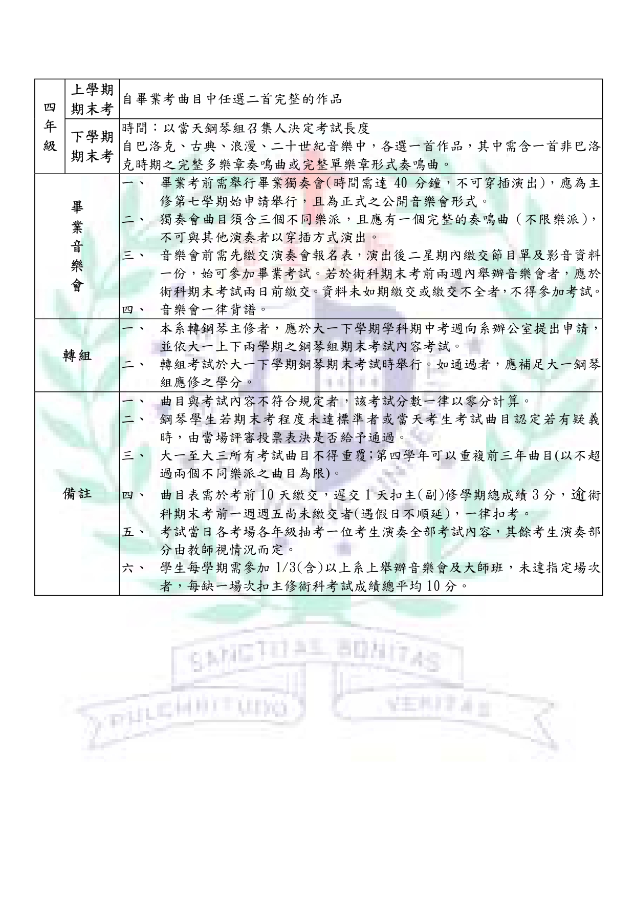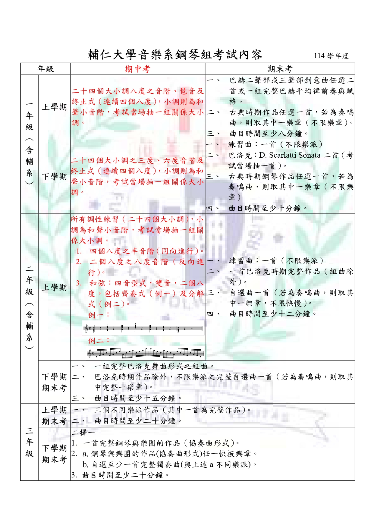 鋼琴組考試內容